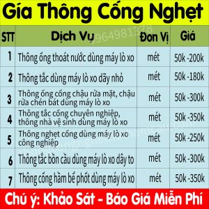 2. Báo Giá chuẩn thông cống nghẹt tại TPHCM