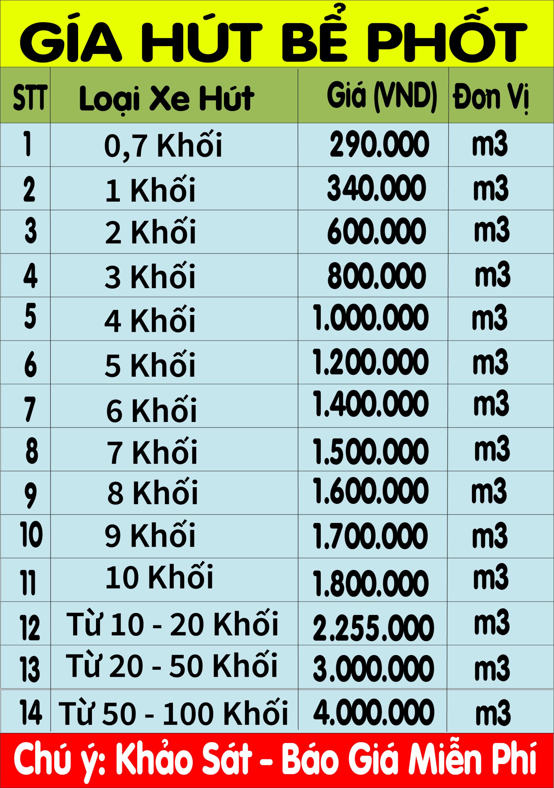 * Lưu ý: Bảng giá trên chỉ mang tính tham khảo. Chi phí thực tế sẽ thay đổi sau khi có kết quả khảo sát địa hình thi công