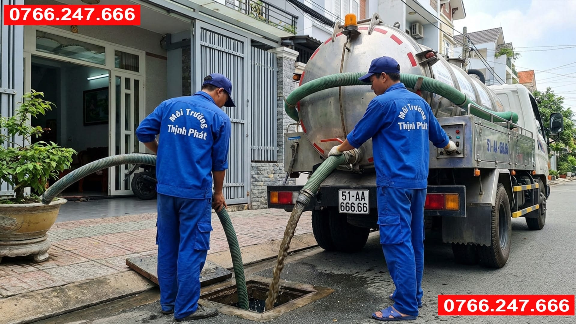 - Bước 3: Tiến hành thông tắc và hút bể phốt đúng kỹ thuật, kiểm soát mùi, hạn chế tiếng ồn và đảm bảo chất thải được thu gom, vận chuyển đúng quy định môi trường.